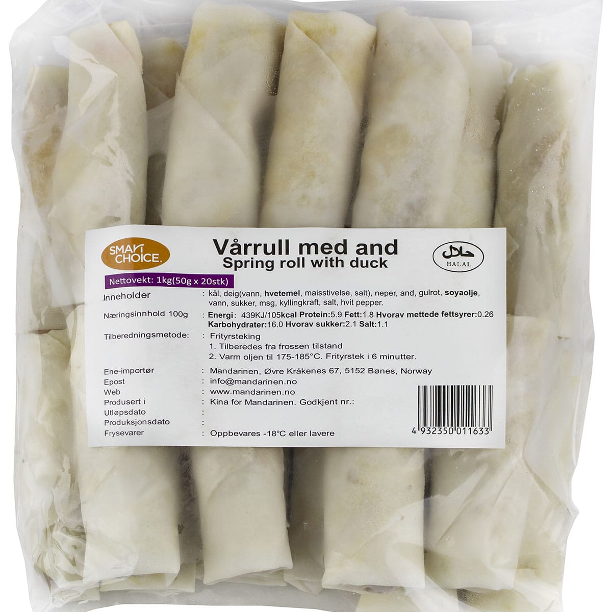 Vårrlull m/and Smart Choice 50g x 20stk (1kg) /10 pakker per kartong