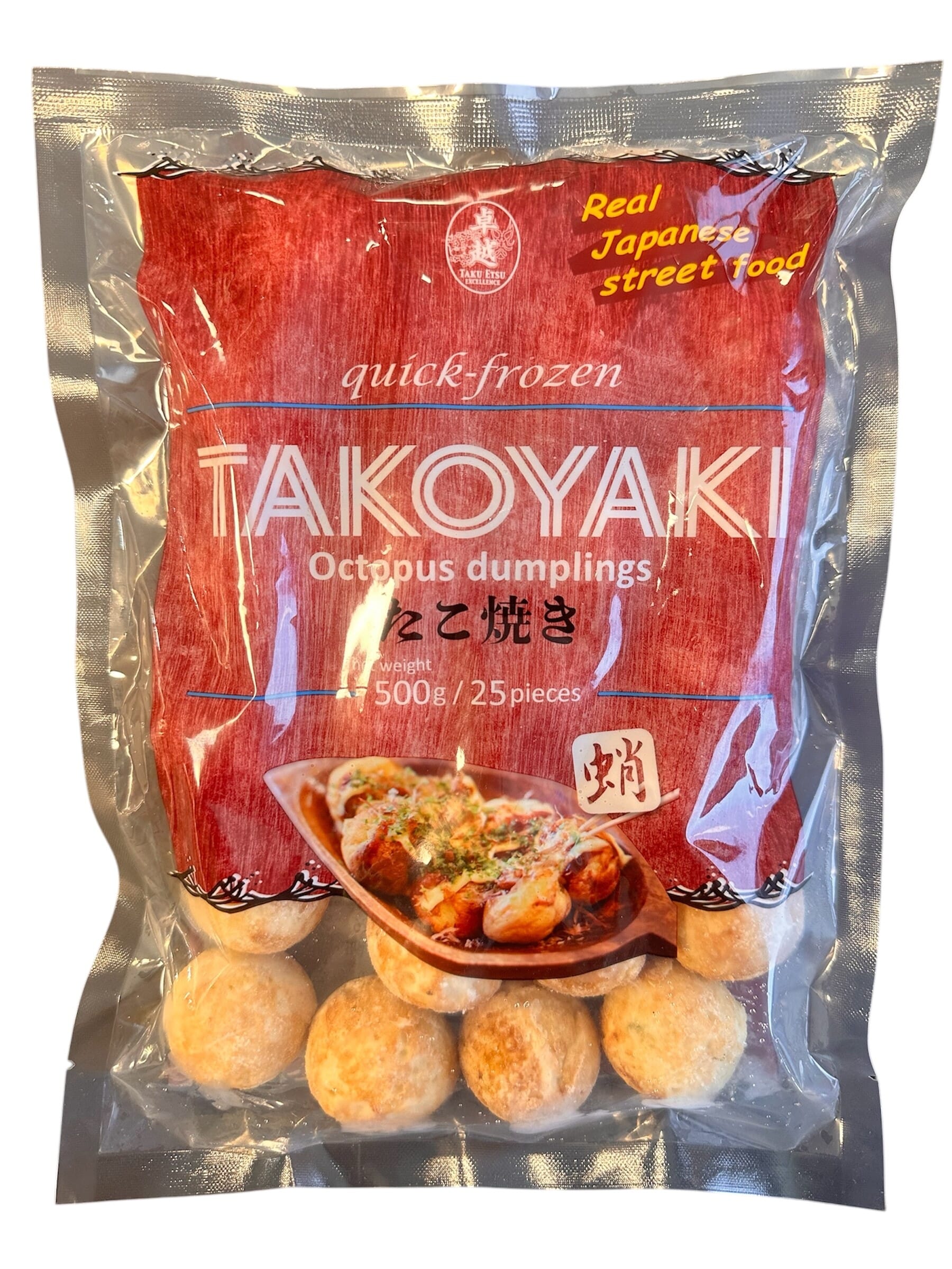Japansk snack laget av hvetemelbasert røre, fylt med blekksprut, vårløk, kål, ingefær og soya.