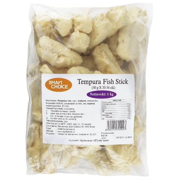 Sprø og smakfulle fiskepinner med lett tempurapanering. Laget av hvitfisk (pangasius) som gi en mild og saftig smak. En rask og velsmakende rett, passer perfekt til tempura maki eller fish&chips