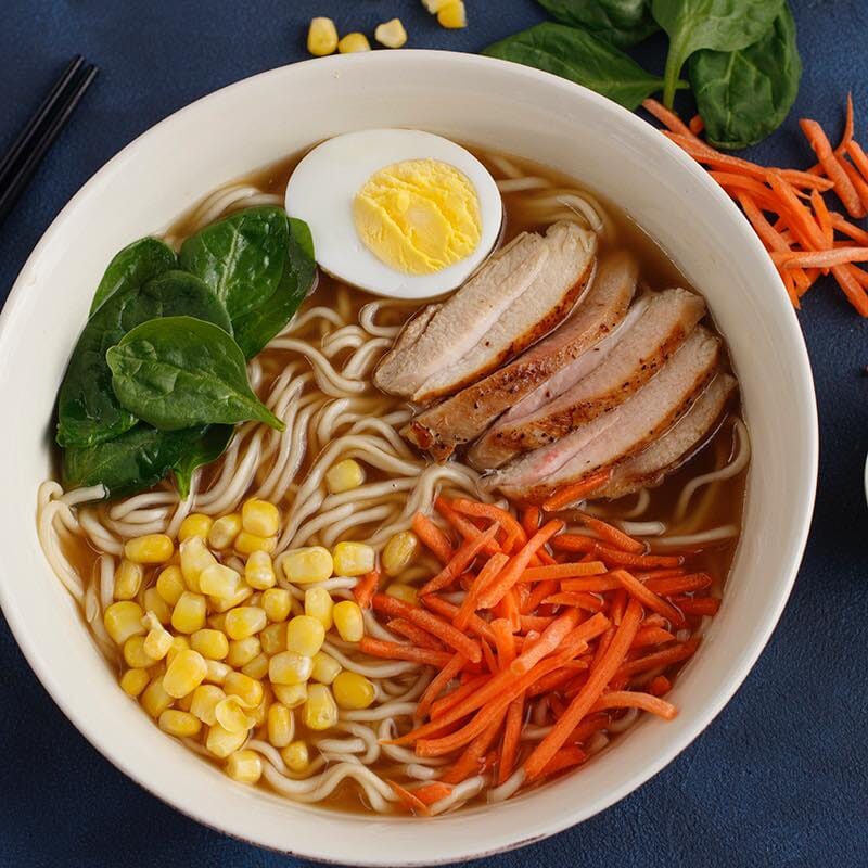 Bruk 300ml kokende vann til 46ml (55g) ramen mix. 1 pose á 833ml (1kg) tilsvarer 18 porsjoner